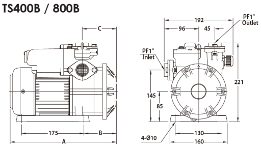 4. 泵浦內置溫度保護開關,防止水源不足時泵浦空轉。當水溫超過55°C時,泵浦自動斷電(TS400B / 800B)
