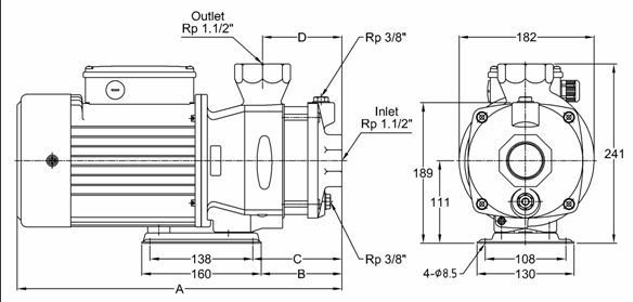 水平多段離心式泵浦,泵浦與馬達同 軸,葉輪固定於加長之馬達軸心上,主要動作 部位零件為不銹鋼材質。