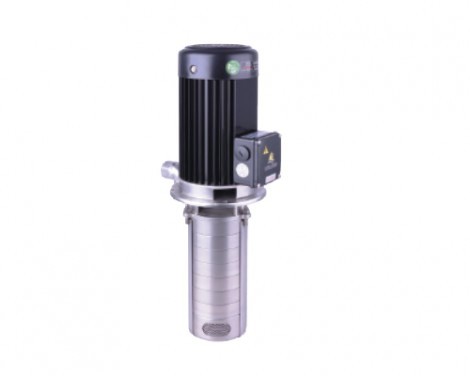 直立多段離心式泵浦,浸水式,泵浦與馬達同軸,主要動作部位零件為不銹鋼材質。