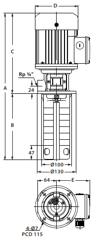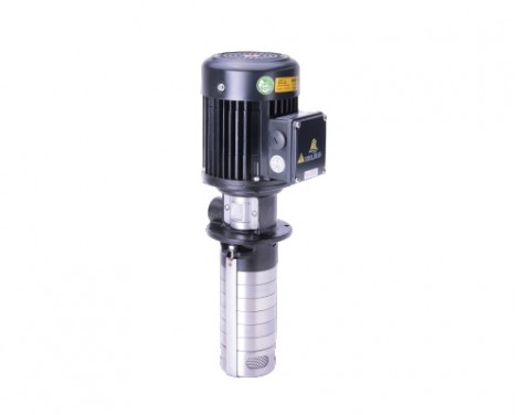 直立多段離心式泵浦,浸水式,泵浦與馬達同軸,主要動作部位零件為不銹鋼材質。