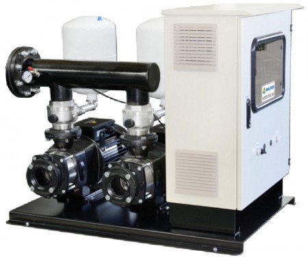 並列運轉 : 使用時單台啟動,隨使用水量增加,單台運轉無法滿足設定之壓力及使用水量時,第二台自行啟動併入運轉補償,隨水量遞減,單台可以滿足設定之壓力及使用水量時,第二台自動停機。