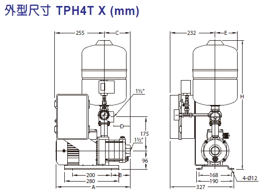 | 型式 | A | B | C | D | E | H | 壓力桶(L) |