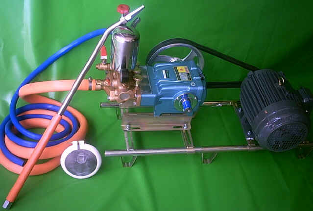 分電動式及引擎式兩種.一般之工地皆用於卡車進出之清潔泥土.灰塵.亦可用於園藝之噴霧.除虫.電動一般為工廠之清潔or清洗小機車.汽車用.規格1/2-1.5"