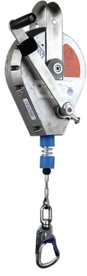 本防墜器具有萬一墜落時可瞬間鎖定功能,衝擊能量抵銷致傷害減少。救援防墜器具 有雙重作用(可轉換為具有絞盤收放功能)可垂直移動作業並可以上下伸縮卷取。適用 於人孔作業及侷限空間.工作場所於中心位置為防止工作人員墜落及救援用。