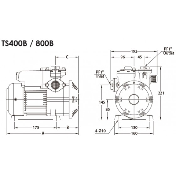 4. 泵浦內置溫度保護開關,防止水源不足時泵浦空轉。當水溫超過55°C時,泵浦自動斷電(TS400B / 800B)