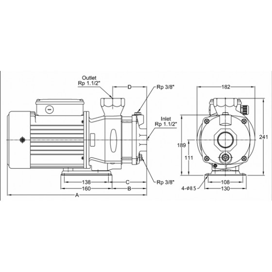 水平多段離心式泵浦,泵浦與馬達同 軸,葉輪固定於加長之馬達軸心上,主要動作 部位零件為不銹鋼材質。