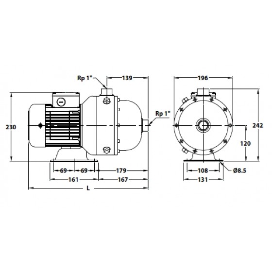 水平多段離心式泵浦,非自吸,泵浦與馬達同軸,葉輪固定於加長之馬達軸心上。