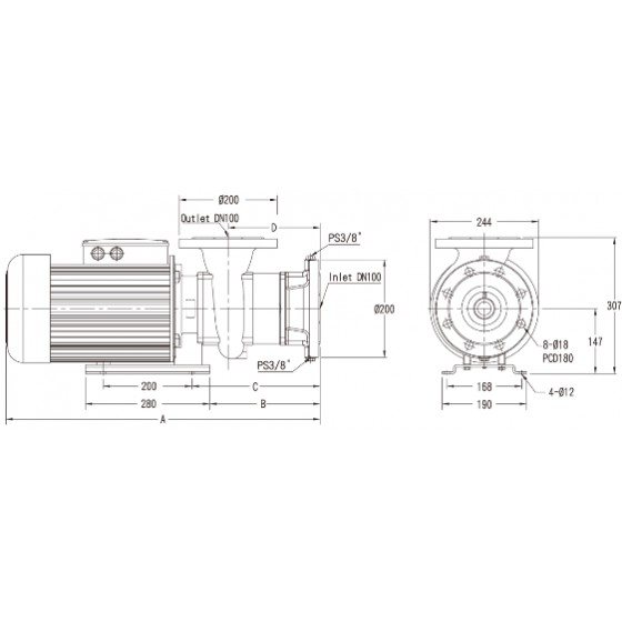 TPM為水平多段式離心泵浦,非自吸式,泵與馬達同軸設計,配用機械軸封,