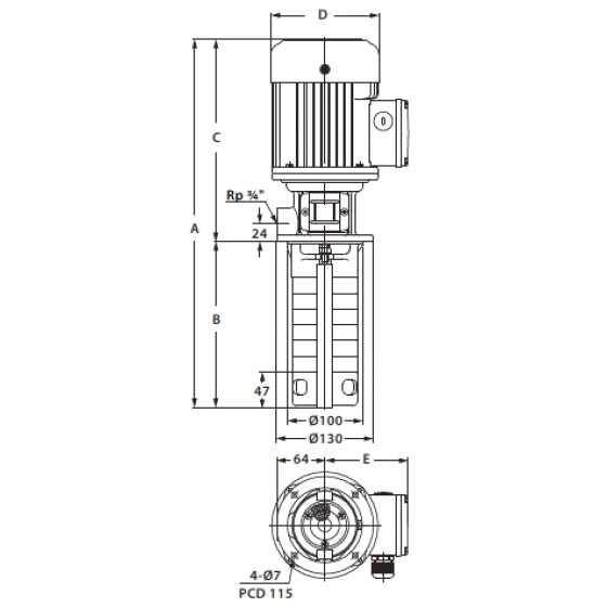 直立多段離心式泵浦,浸水式,泵浦與馬達同軸,主要動作部位零件為不銹鋼材質。