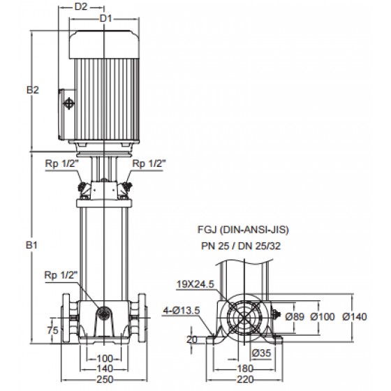 為非自吸式的立式多段離心泵,整個泵主要由電機、泵頭、泵體、基座等組成,泵出入口在同一條直
