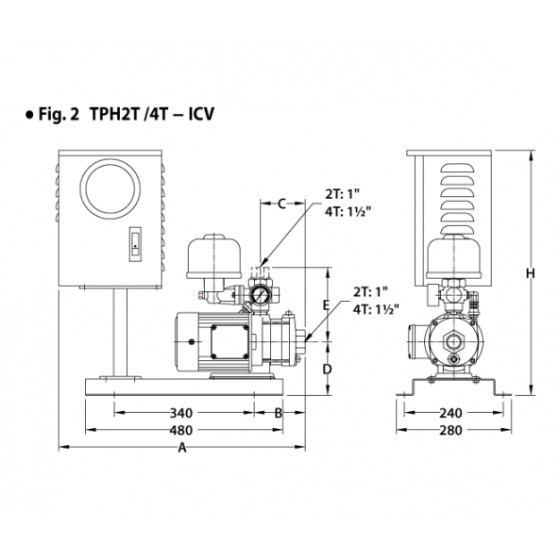 | TPH4T2KIC | 1 | 1Ø | 200-240V | 2.0 | 1½ | 1½ | 20 | 60 |