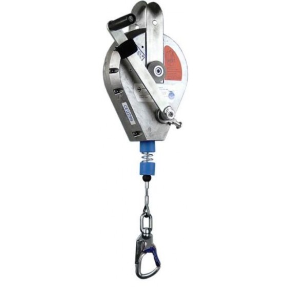 本防墜器具有萬一墜落時可瞬間鎖定功能,衝擊能量抵銷致傷害減少。救援防墜器具 有雙重作用(可轉換為具有絞盤收放功能)可垂直移動作業並可以上下伸縮卷取。適用 於人孔作業及侷限空間.工作場所於中心位置為防止工作人員墜落及救援用。